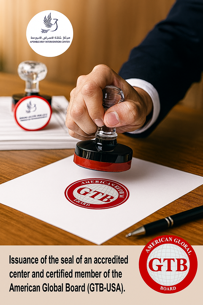بموجب الاعتماد الممنوح لاكاديمية الدكتور عبدالقادر العداقي الدولية AIA من شركائها تم اعتماد مركز د.عائشة للتدخل المبكر (البحرين) كعضو معتمد رسميًا ومنحه العضوية والاعتماد من قبل البورد العالمي الأمريكي (GTB-USA). وبصفته عضوًا معتمدًا ومعترفًا به، يحق لمركز د.عائشة للتدخل المبكر تنظيم وتنفيذ الدورات التدريبية، وورش العمل، والجلسات والتقارير، وجميع الأنشطة المهنية ذات الصلة، وذلك وفقًا لمعايير واعتماد البورد العالمي الأمريكي (GTB-USA).